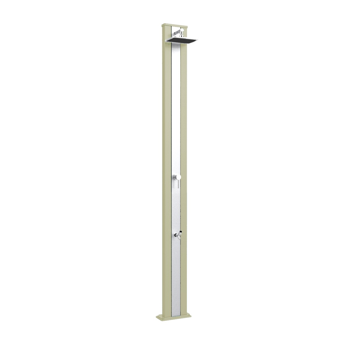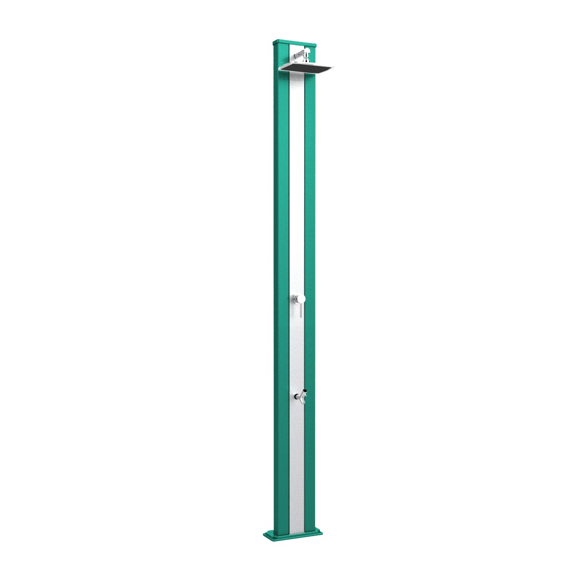 Outdoor solar shower for hot/cold water Spring S produced by Arkema Design, with body in aluminium powder coating, mixer faucet and footwasher.
