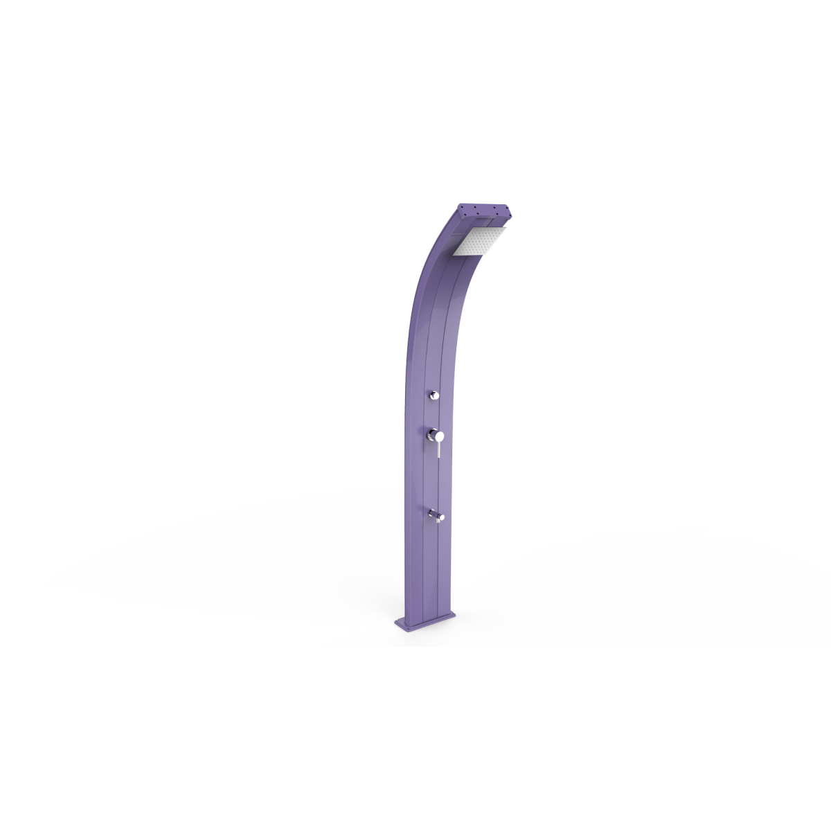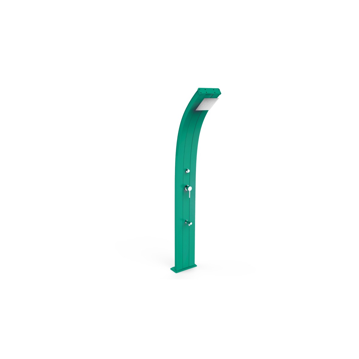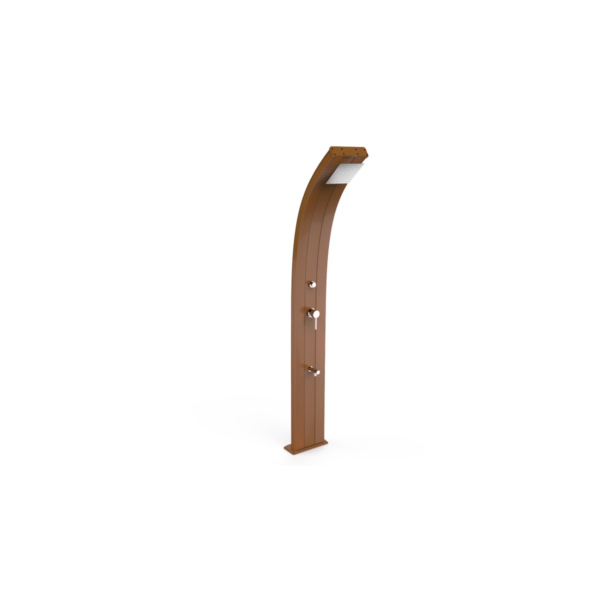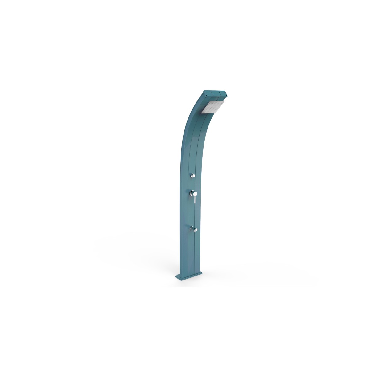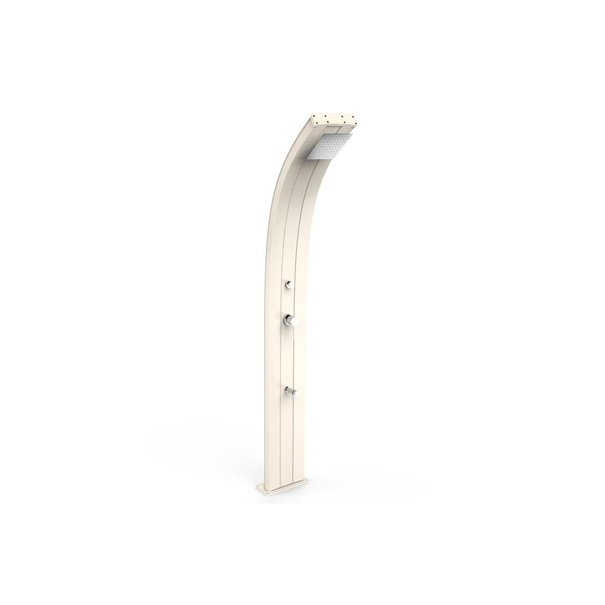 Outdoor solar shower Dada with body in aluminium and modern and curvy design.