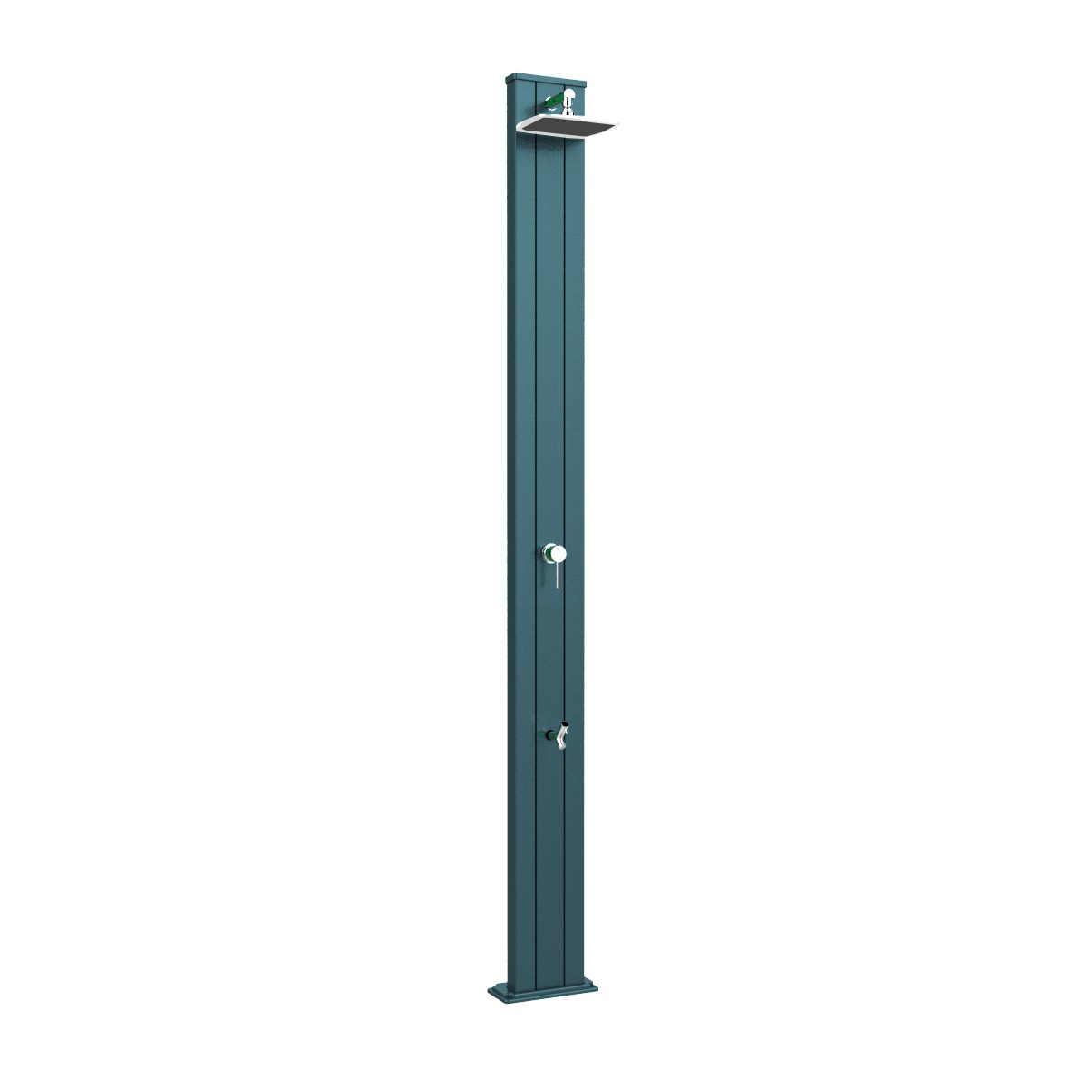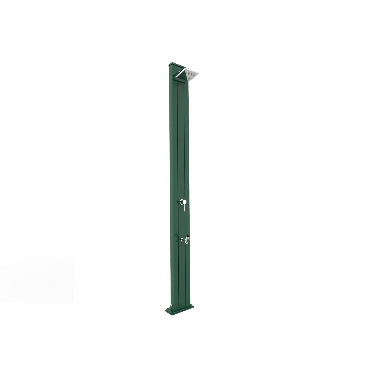 Doccia solare da esterno Spring Straight nuova e originale con scocca in alluminio, miscelatore e lavapiedi.