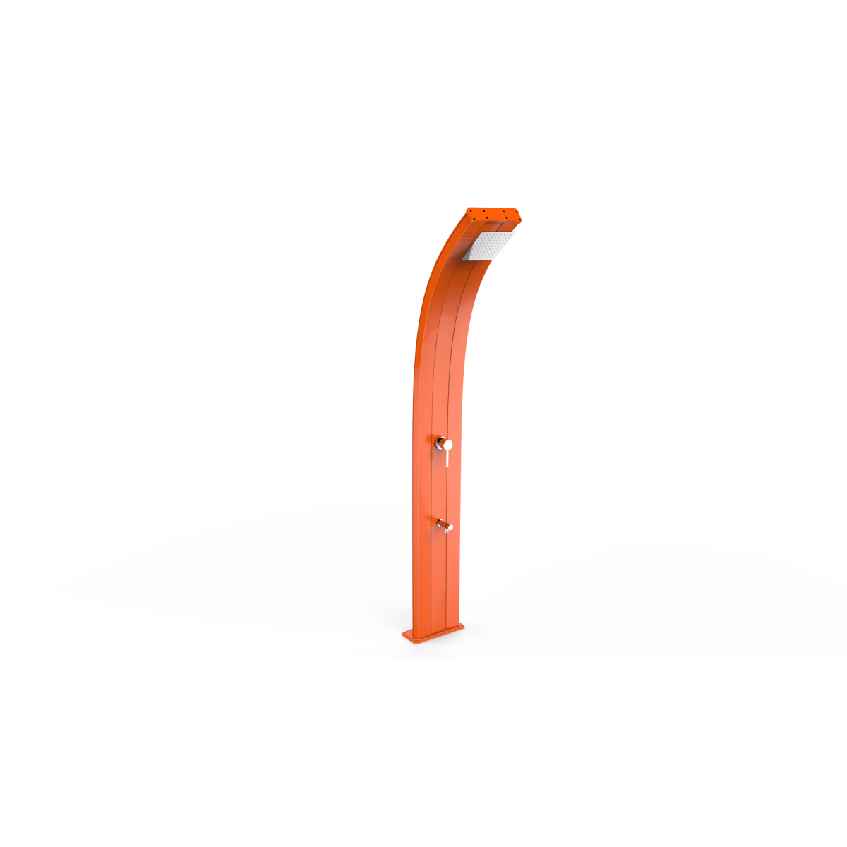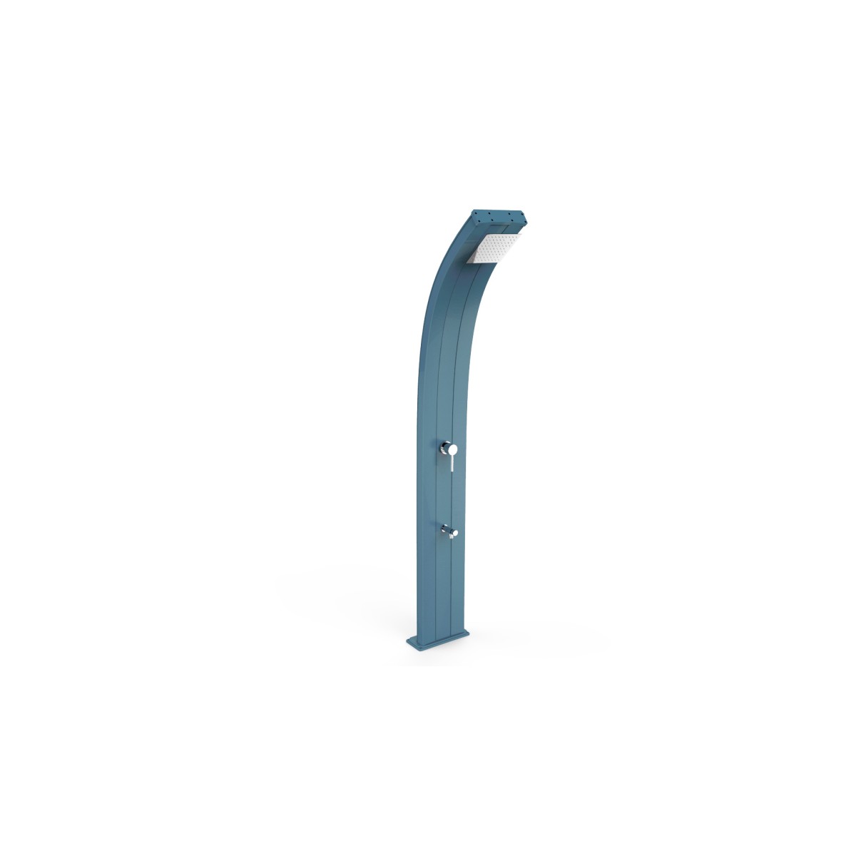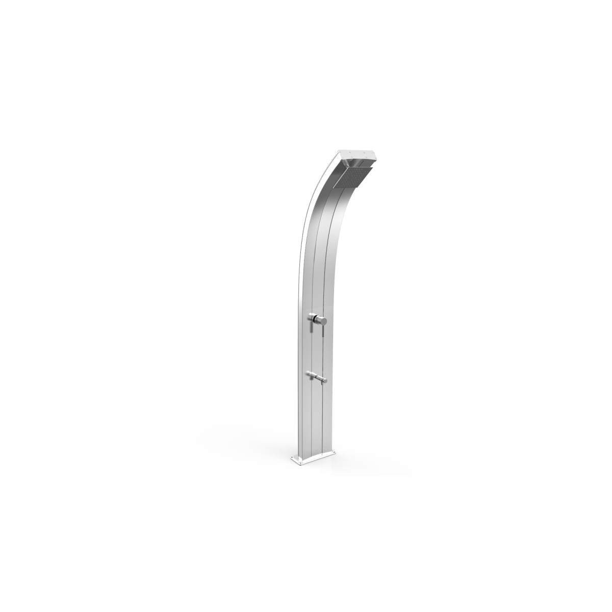 Doccia solare da esterno Dada con scocca in alluminio con design moderno curvilineo.