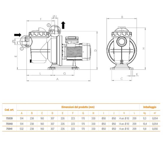 Auto-adescante: Capacità di aspirazione rapida che facilita l'avvio dell'impianto di filtrazione.