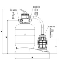 Raccordi: Compresi per diam.38 e diam.50 mm su filtro e pompa