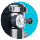 Gruppo manometro e sfiato: Manometro di controllo e sfiato d’aria integrati nella valvola.