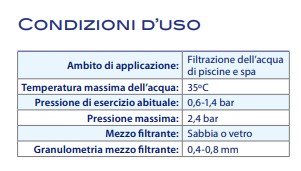 Composto da un filtro realizzato in termoplastica soffiata ad alta resistenza, una valvola selettrice a 6 vie e una pompa autoadescante.